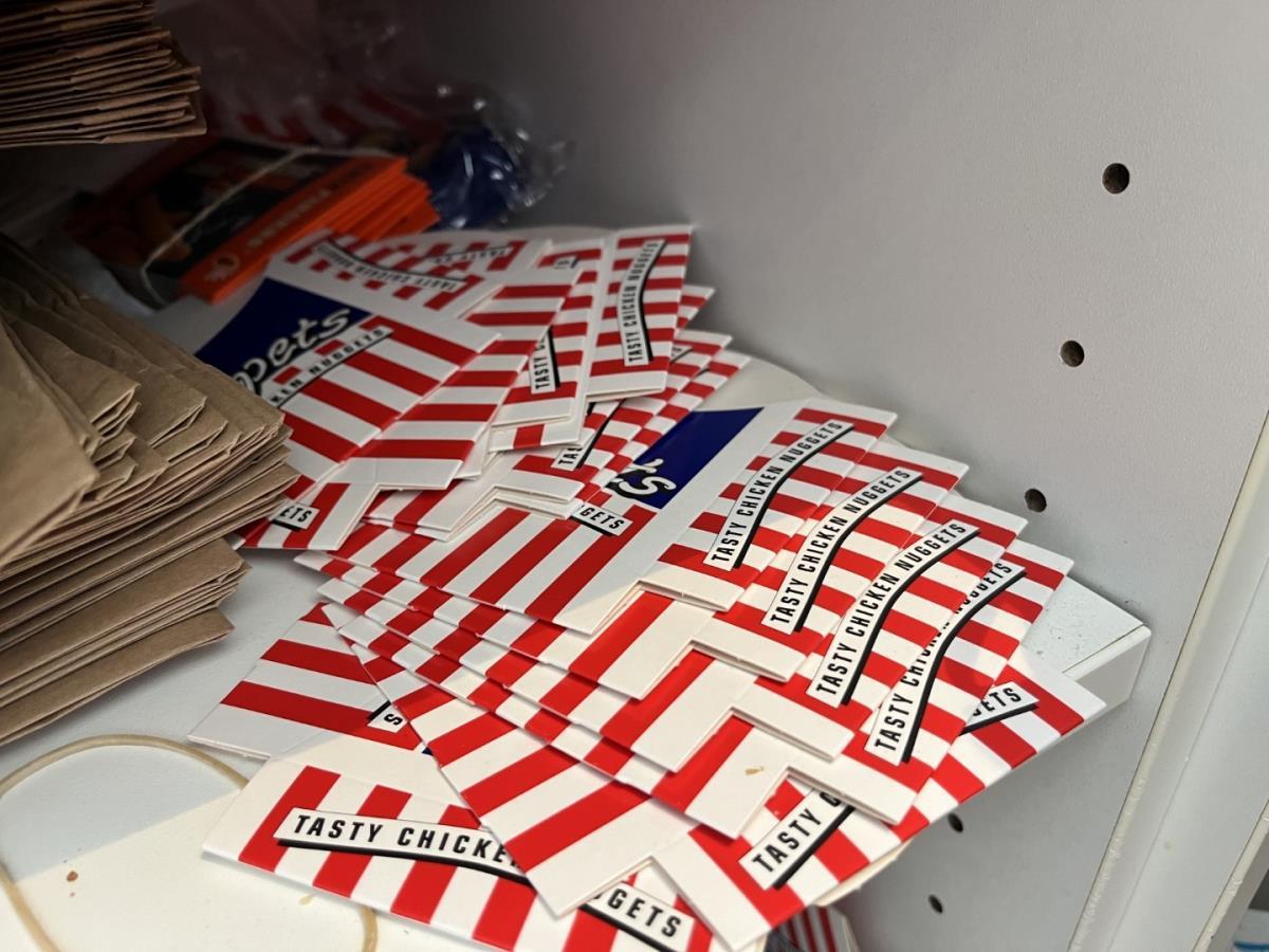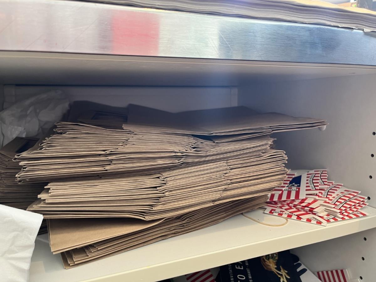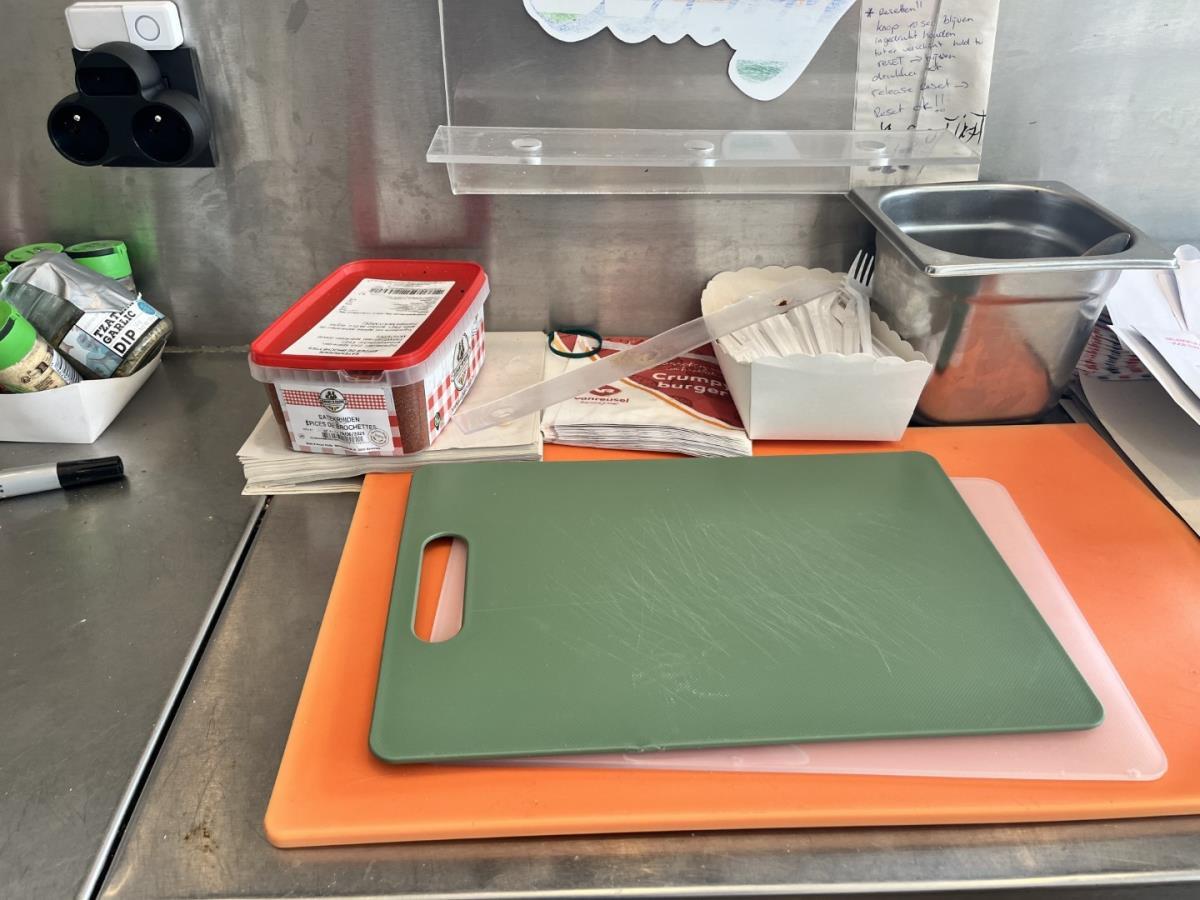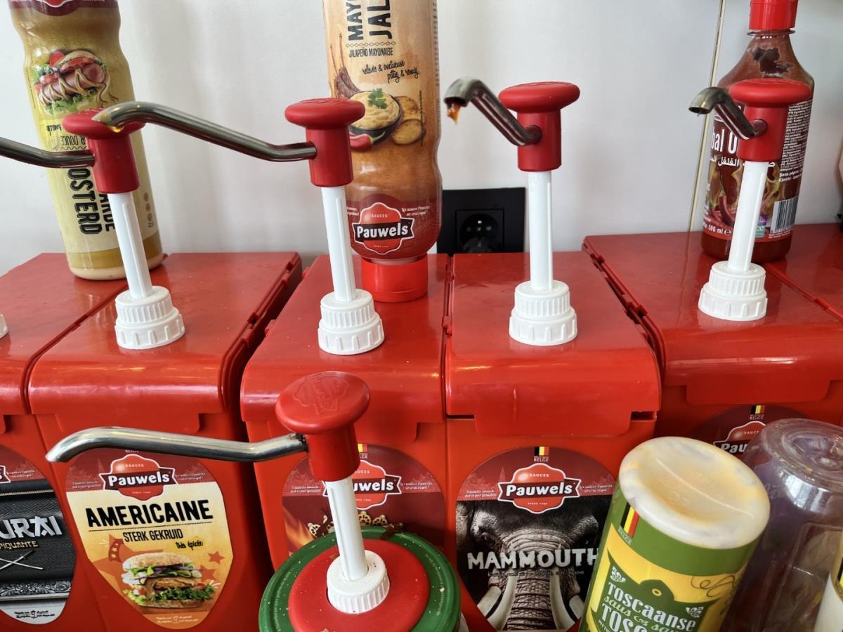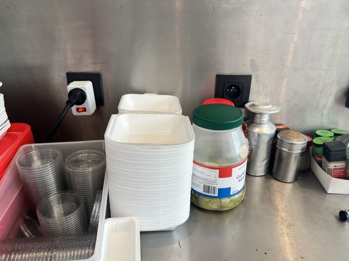 Bu saus dispensers, sauzen, verpakkingsmaterialen, dienbladen, kruiden, flesjes butangas, ticketrollen, wegwerpbekers etc