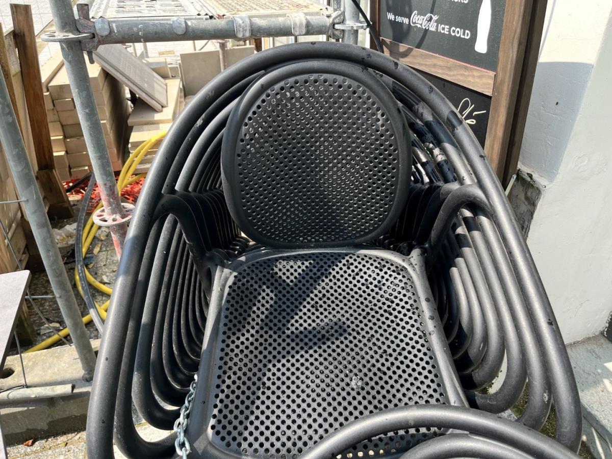 Lot number 24: LOT VAN 28 TERRASSTOELEN EN 4 TAFELS