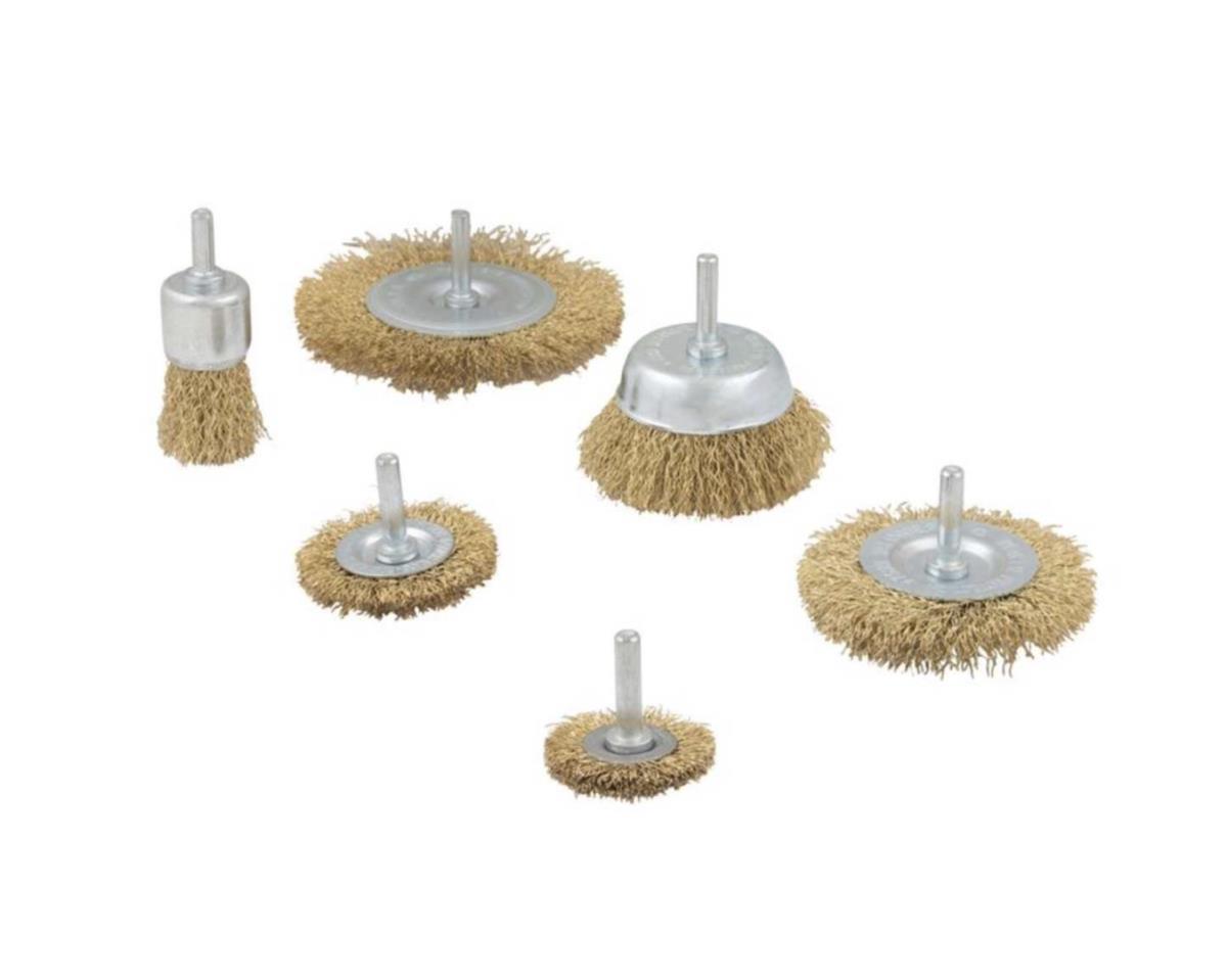 5 verschillende staalborstels met stift; ongebruikt en verpakt
