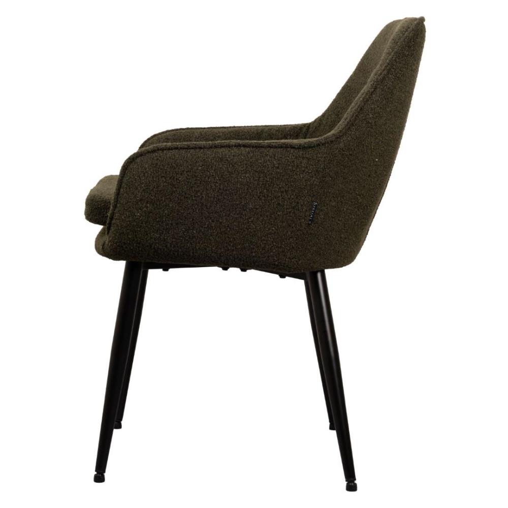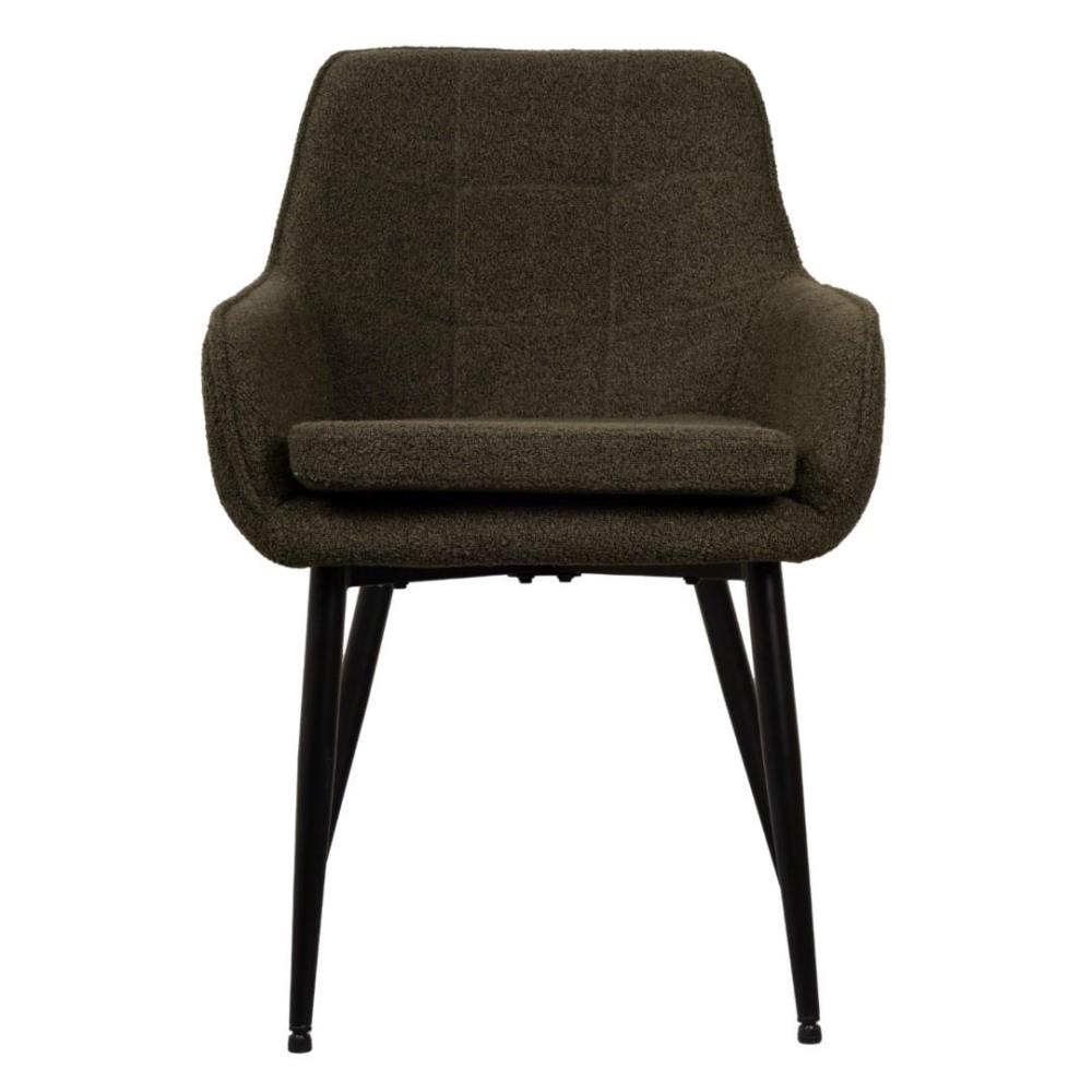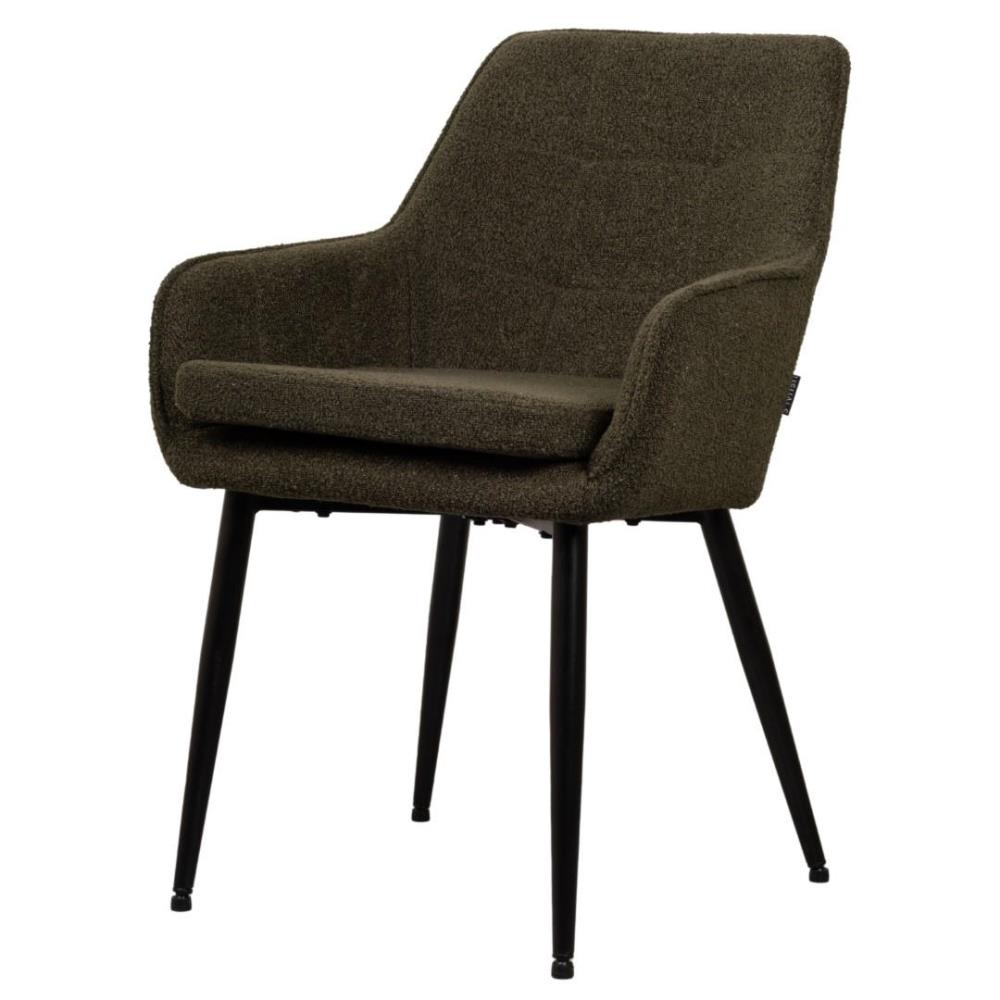 6x Design eetkamerstoelen, model: 21002-08, kleur: groen, boucle stof, geruit gestikt met verzwaard en gecoat onderstel