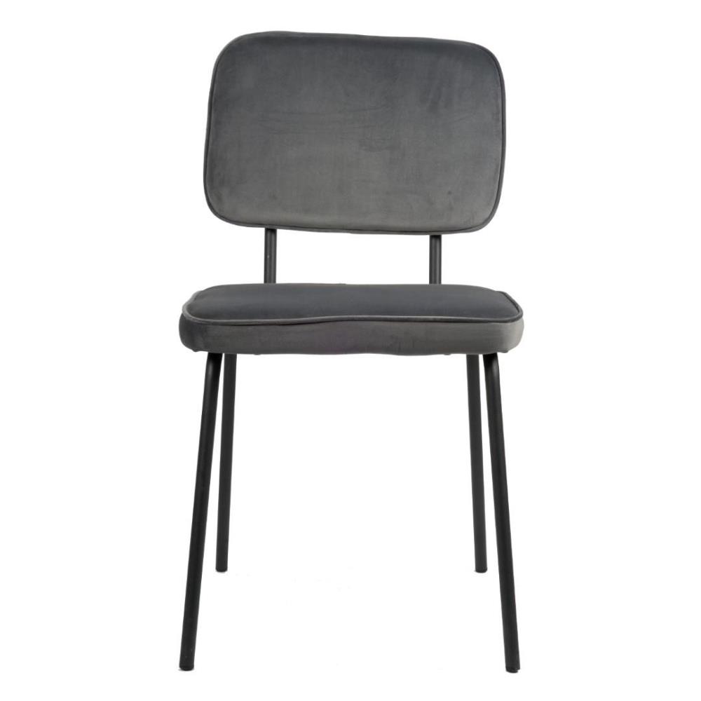 8x Modern eetkamerstoel, model: Joe-05, kleur: grijs, velvet stof, zitvlak met extra foam kussen, gecoat en verzwaard onderstel