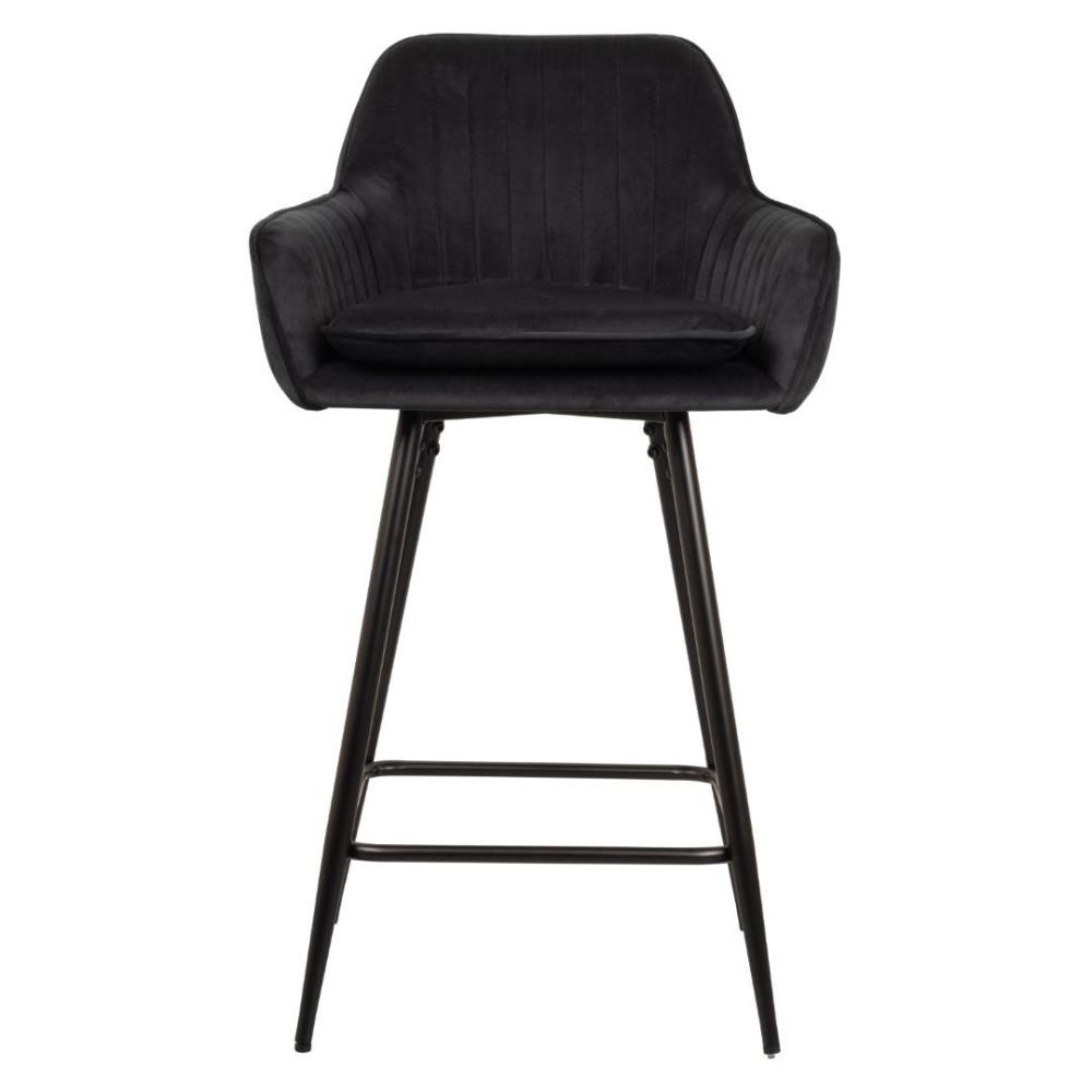 4x Design barkruk, model: 23003-20, kleur: zwart, velvet, gecoat en verzwaard onderstel