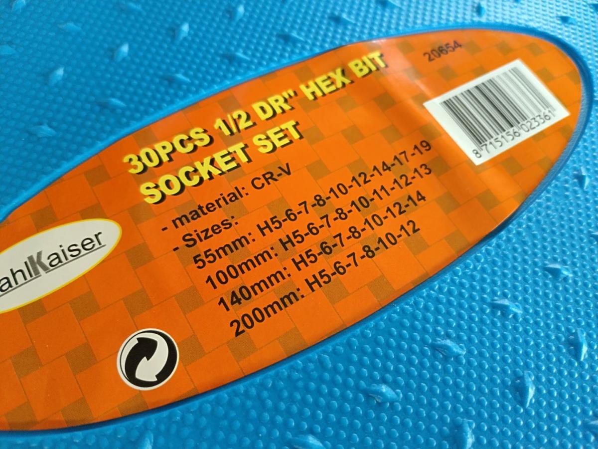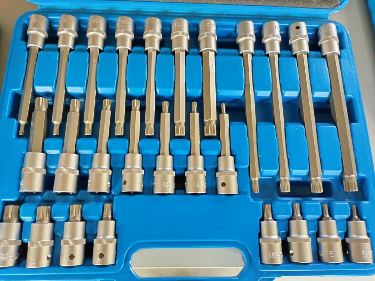 4x doppenset 1/2", Ribe set 32 dlg, Hex (inbus) 30 delig, Spline set 26 delig, en Torx set van 32 delig. Allen proffesionele kwaliteit van Stahlkaiser, nieuw in koffers