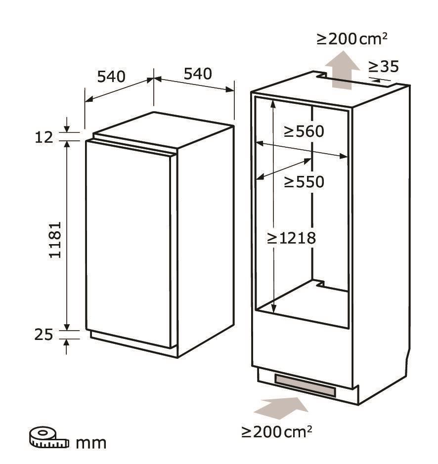 Koelkast;inbouw;nismaat 122 cm;inhoud 201 l;glijbevestiging;omkeerbare deur