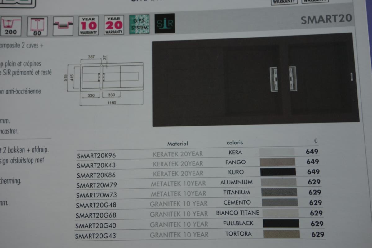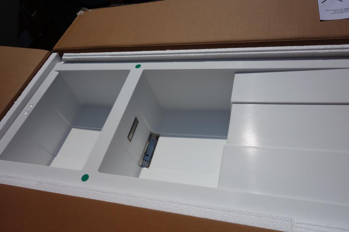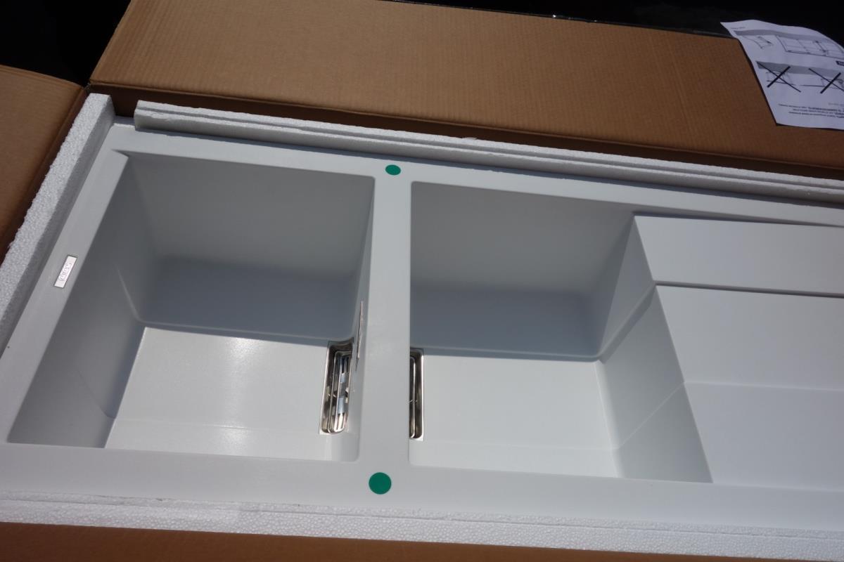 Spoelbak;composite;2 bakken + afdruip;omkeerbaar;kleur bianco titane;116 cm