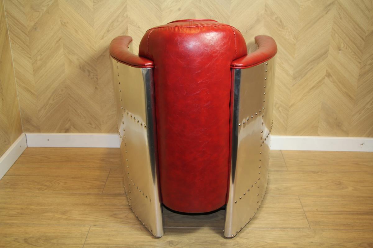 1x Aviator fauteuil, model: Aviator, kleur: rood, hoogwaardig PU leer en aluminium, Aviator armleuningen afgewerkt met chroom en arm ondersteuning, zijkanten met alu
