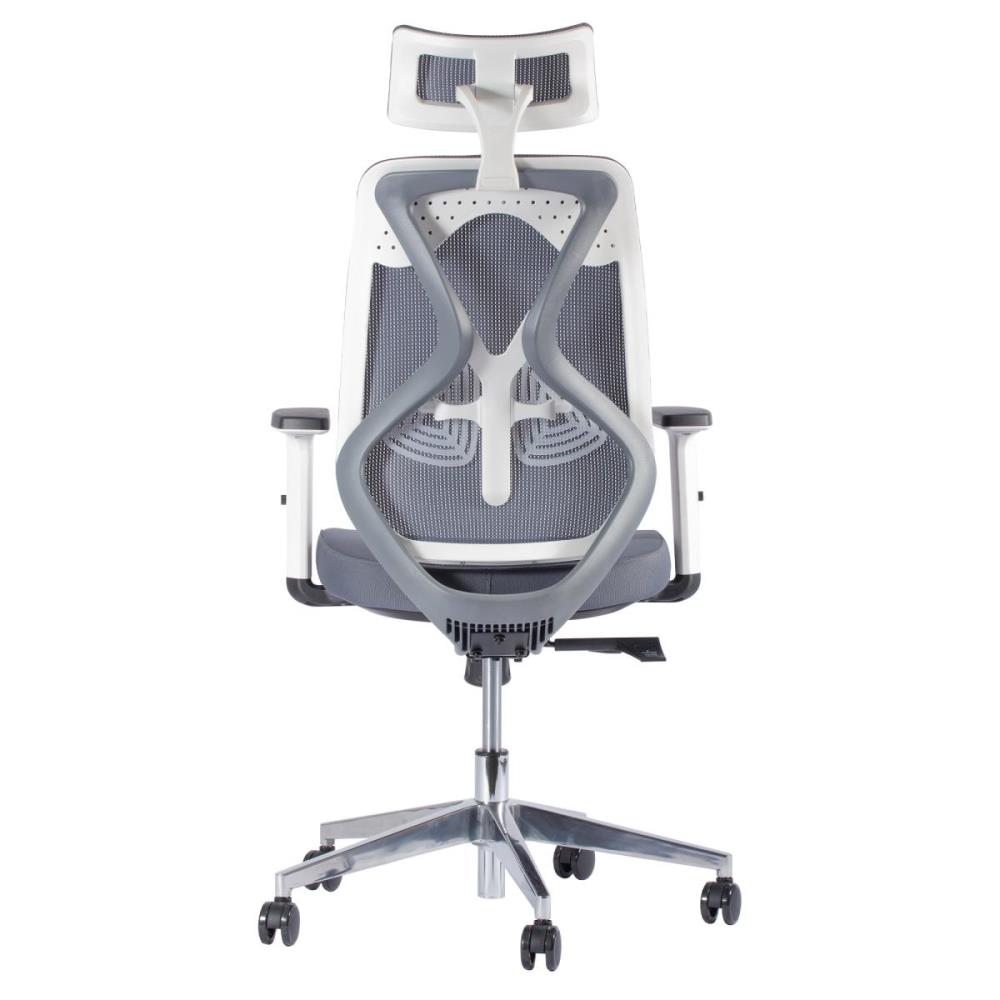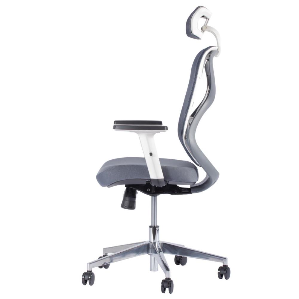 1x Ergo bureaustoel, model: 1 , kleur: grijs, eigenschappen: 100% ergonomisch; rugleuning en zitting van mesh, verstelbare rugleuning , verstelbaar armleuning, diepte en kanteling verstelbare hoofdsteun, meebewegende lendensteun, extra verzwaard, Dit betreft een nieuw product.