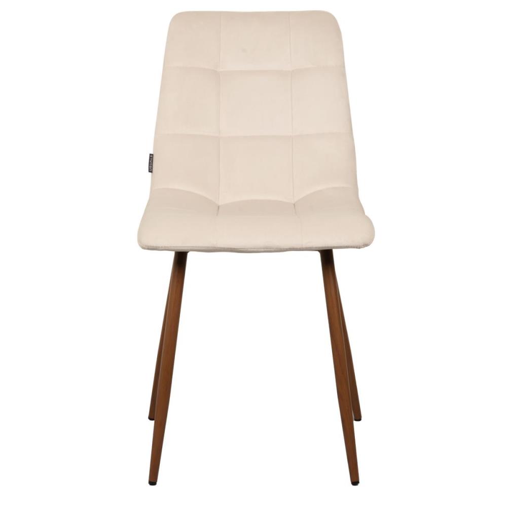 6x Design eetkamerstoel creme velvet walnoot poten