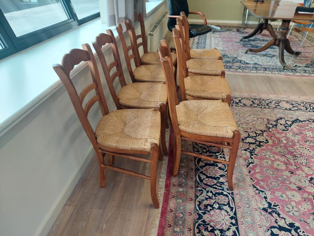Lot number 5: 8 Houten stoelen met rieten zit