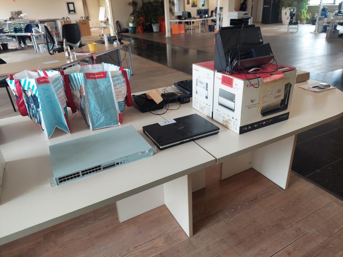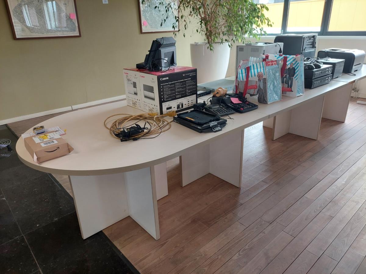 Lot number 21: 1 3-delige formica tafel incl div IT Materiaal
