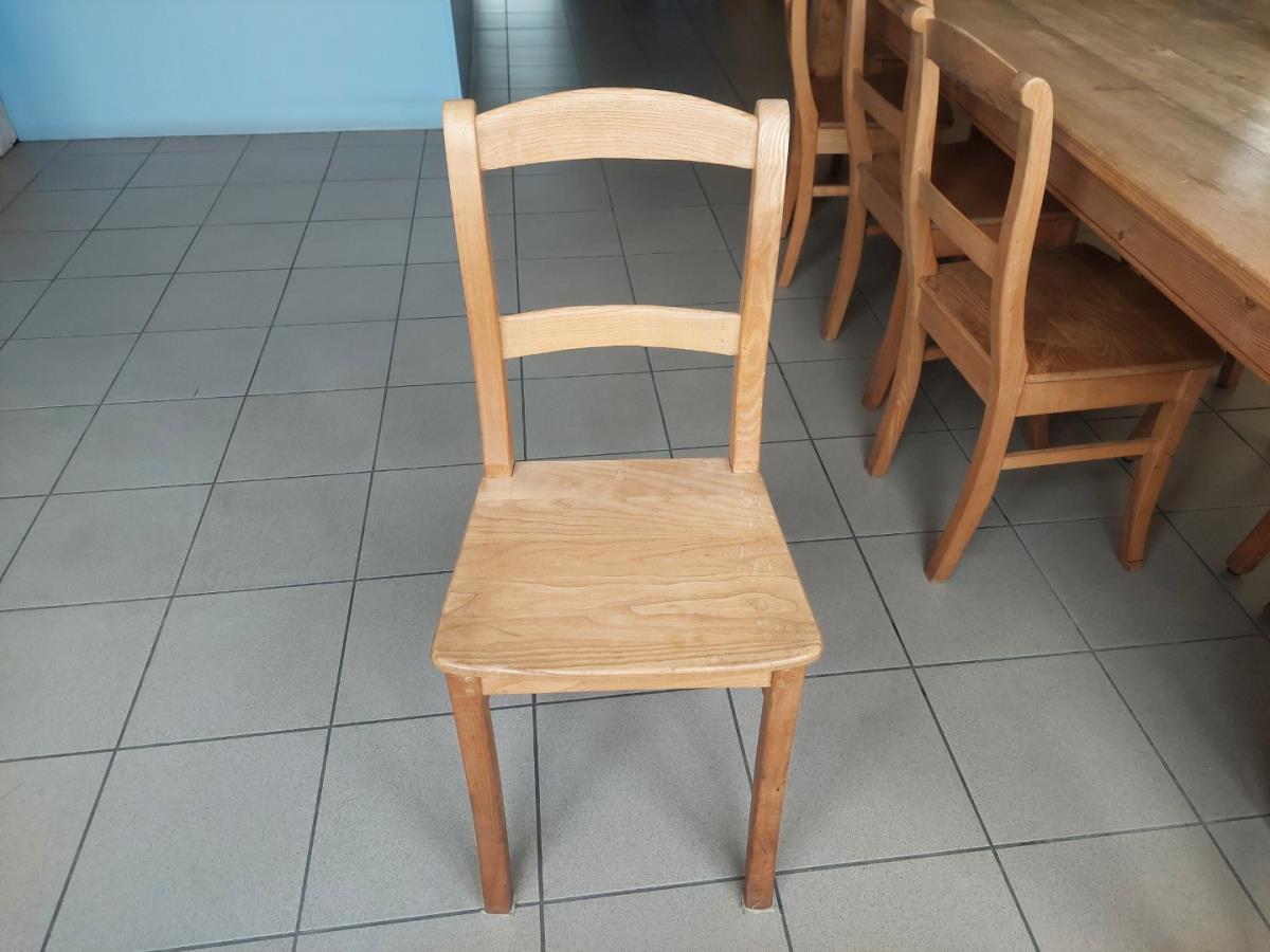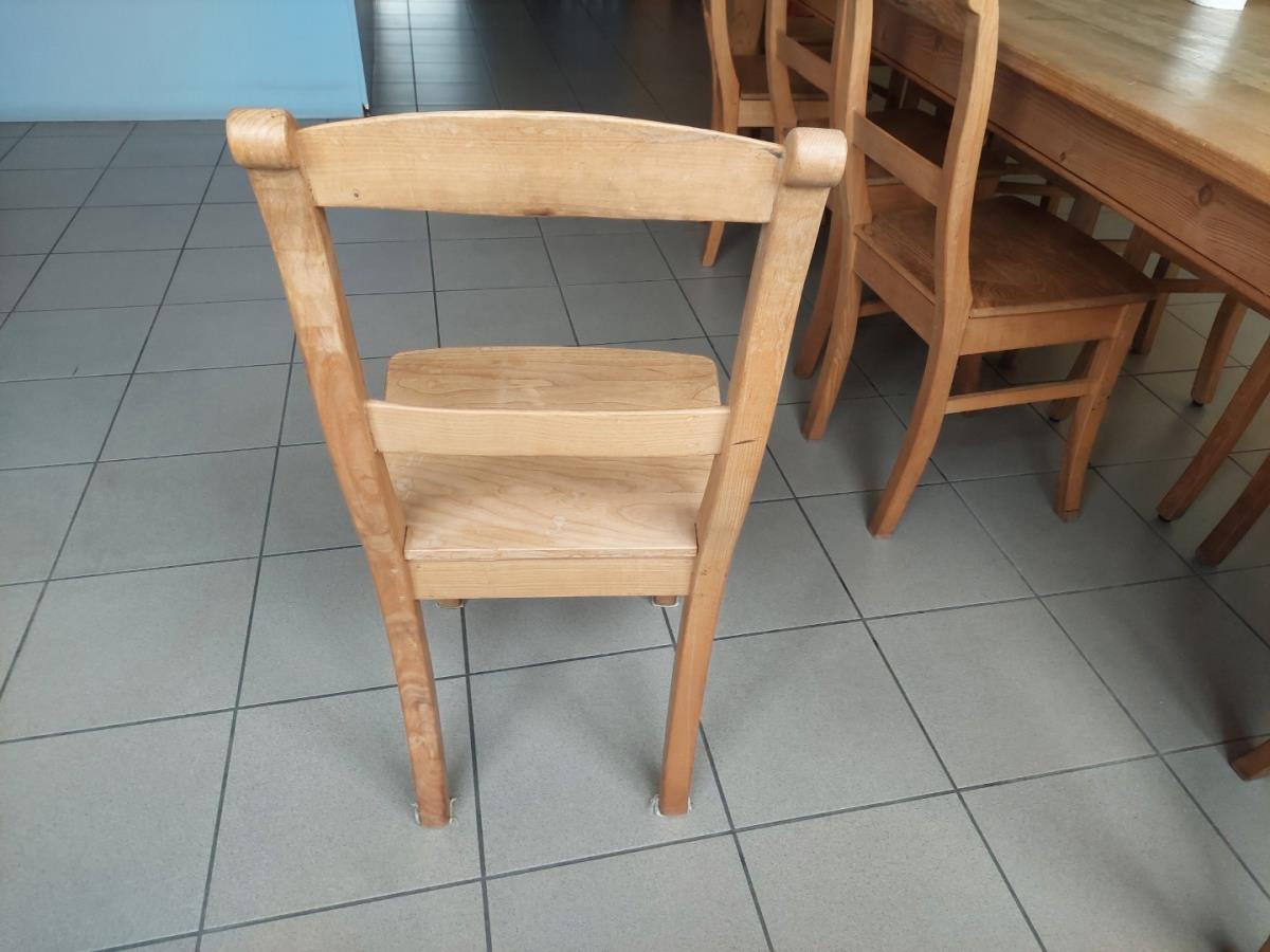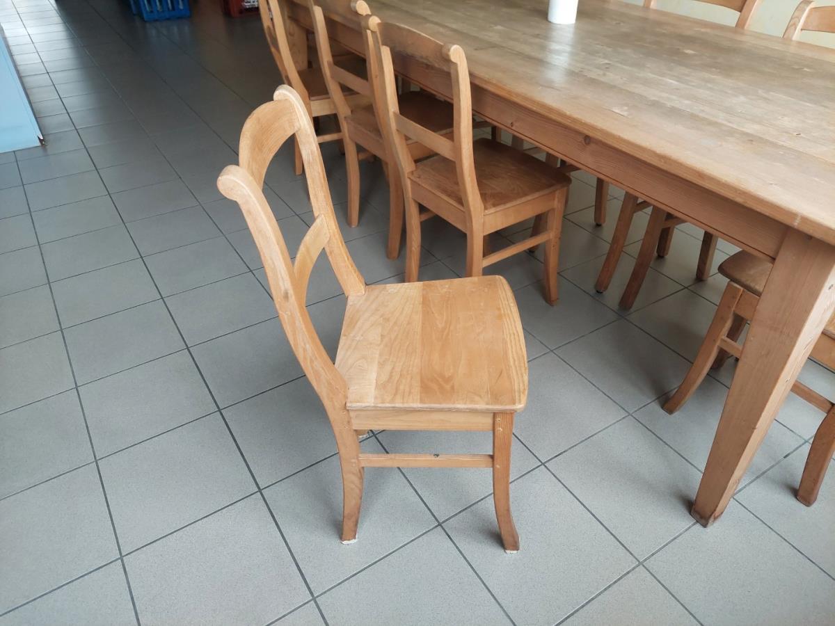 1 Grenenhouten tafel met 10 houten stoelen