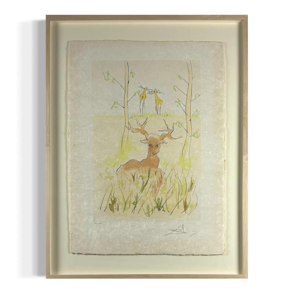Aquatint Salvador Dali ‘Le Cerf Malade’ op Japans papier - Hand gesigneerd en genummerd op 250 exemplaren door de kunstenaar - Professioneel ingelijst - Wordt afgeleverd met origineel certificaat - Galerijprijs: 3500 93x73 cm