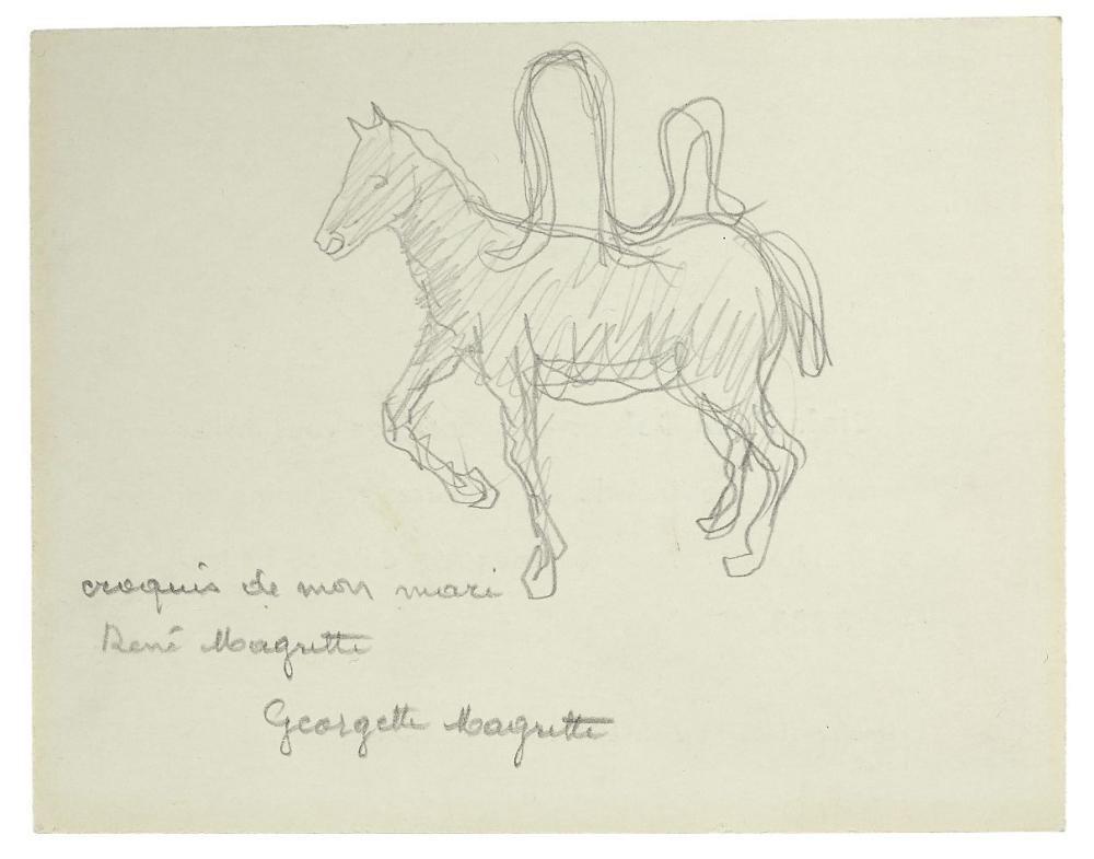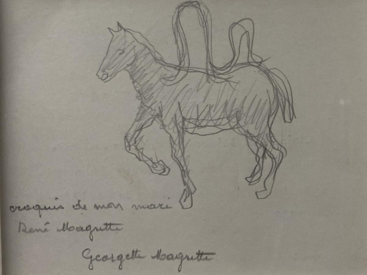 Originele tekening door René Magritte, Hand gesigneerd door Georgette Magritte - Maakte onderdeel uit van grote Magritte tentoonstelling in Zweden - Professioneel ingelijst - Met certificaat - Galerijprijs: 38500 50x43 cm 50x43 cm