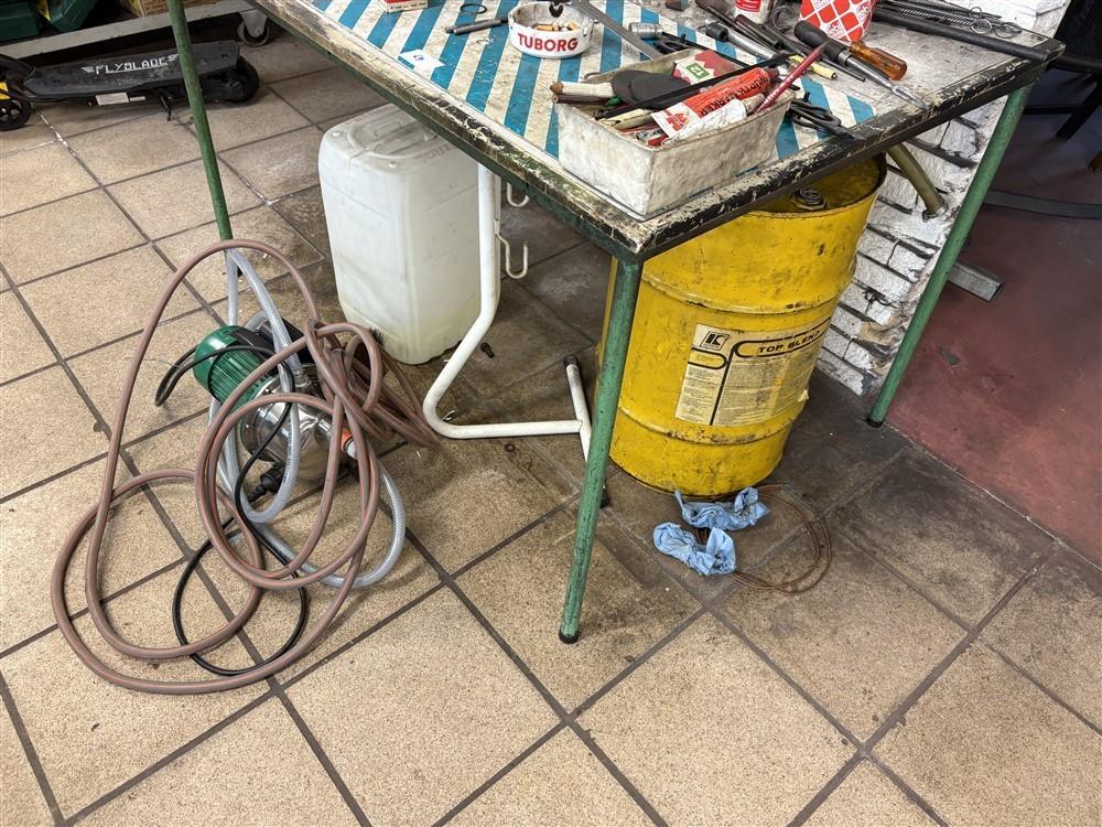 Lot number 69: tafel met toebehoren en pomp