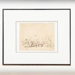 Pen in bruine inkt, gesigneerd, 1968, professioneel ingelijst, 41 x 51 cm, galerieprijs 1.250 €