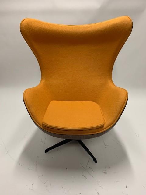 1x design stoel, model: Egg chair Classic Okergeel, kasjmier stof, modern look, kruispoot,draaibaar onderstel, draai en kantelbaar, glasvezel frame