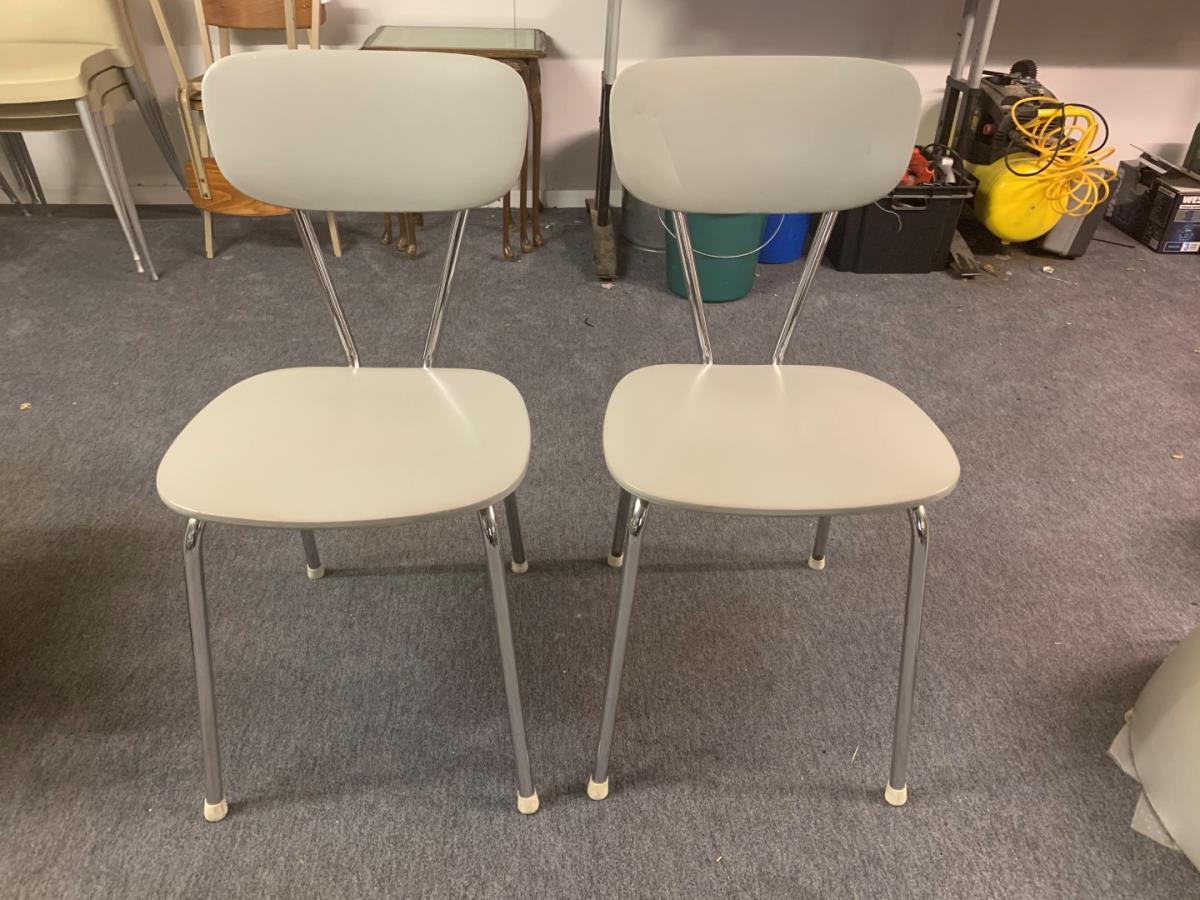 stapelbare keukenstoel, zit en rug skai grijs, poten chroom
