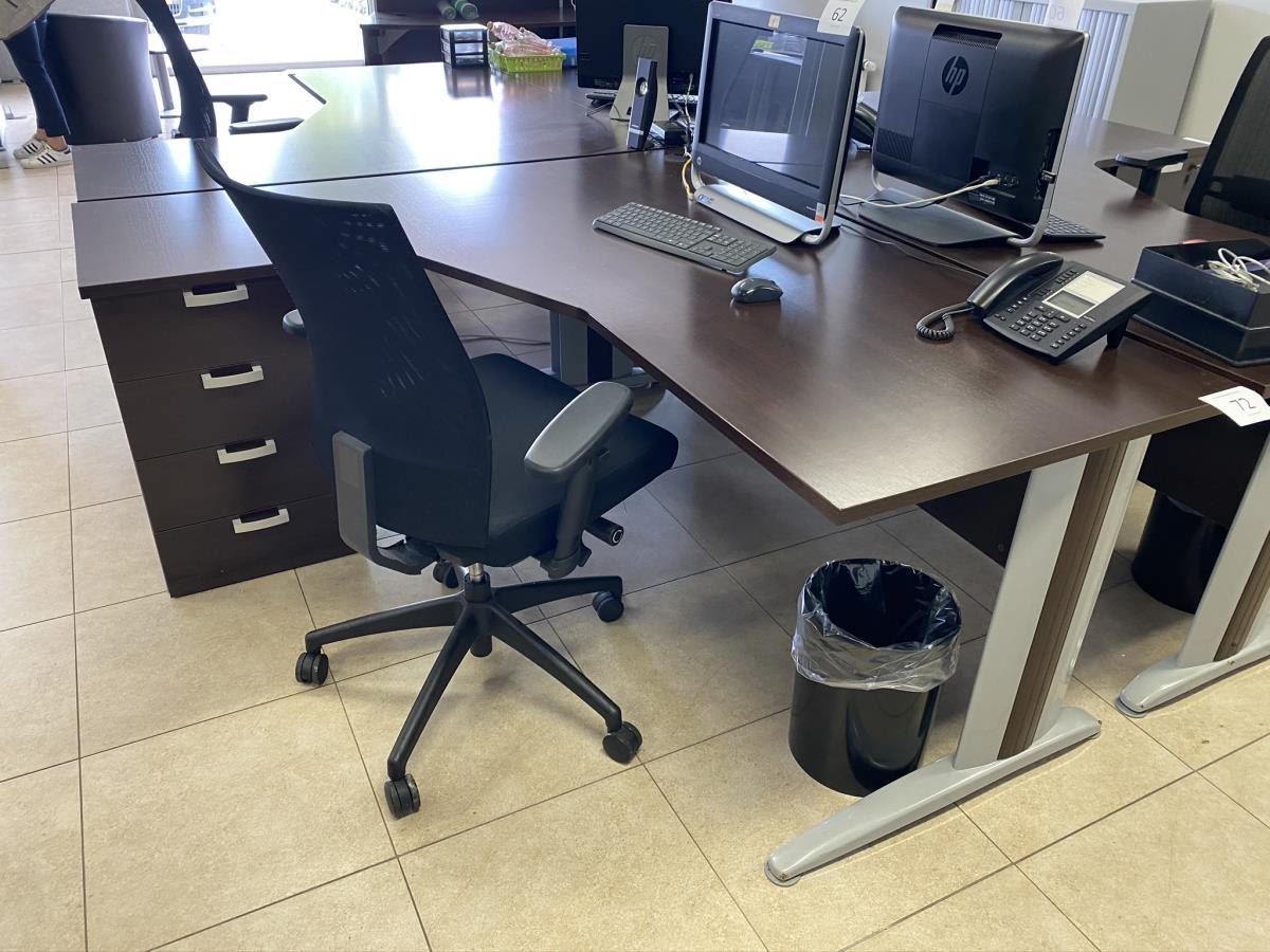 Numéro du lot 72: 1 formica houten hoekbureau, vv geîntegreerde ladeblok