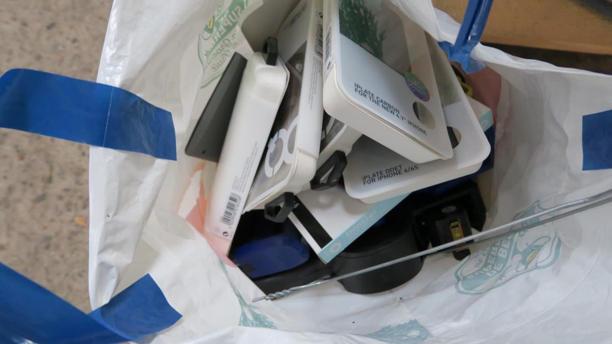 1 Zak met telefoon hoesjes en divers kantoor materiaal