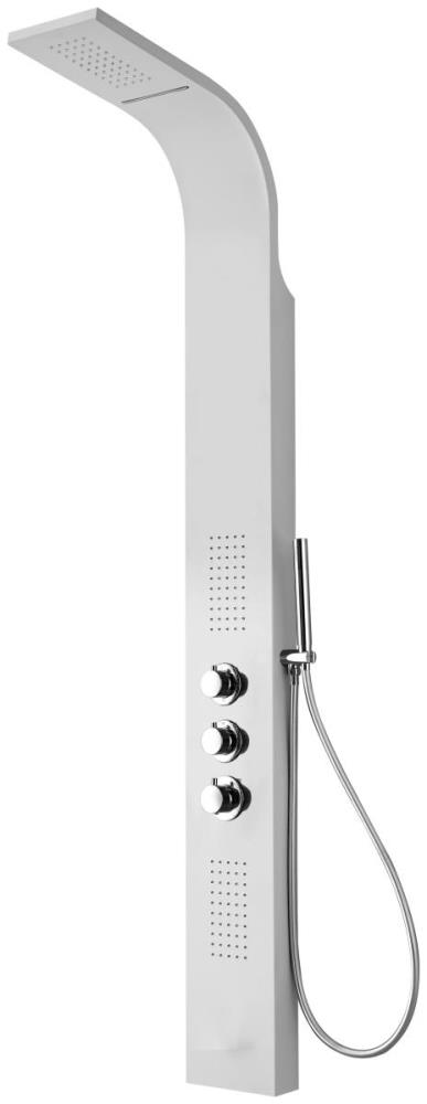 1 x Douchezuil thermostatisch - Kleur: Wit- Materiaal: Aluminium - Hoogte 175cm x Breedte 20cm - Waterjetvlakken - Anti-klakmembraan - Flexibel en handdouche - Regendouche - Mixer - Richtingsventiel - Waterval hoofddouche