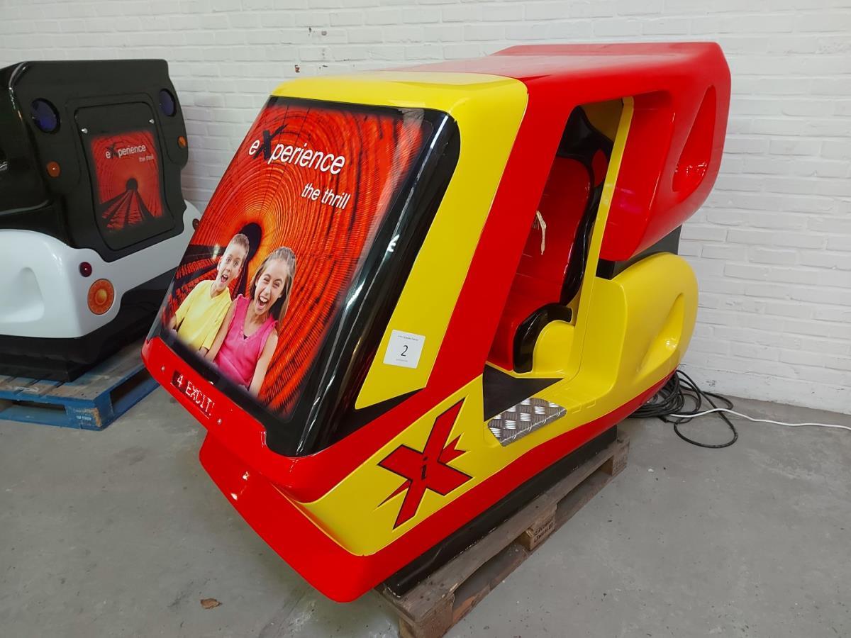 Interactieve simulator attractie met muntinworp. Kies uit 4 verschillende animaties, digitaal scherm en bewegend op 2 assen. Volledig nagekeken en getest. Werkend op 1€. Incl Sleutels.