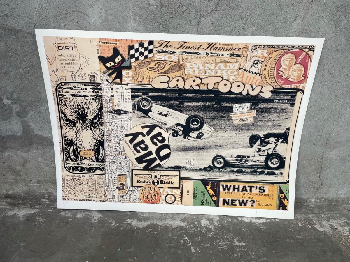 Jaar: 2003, Formaat: 62cm x 85cm, Offset en collage geïnspireerd door zijn collages uit de jaren '60, bepaalde stukken van het werk zijn enkel milimeters opgehoogd, Oplage: 75 exemplaren + AP. Dit is nummer 72/75, Met de hand getekend en genummerd in potlood, Met bijhorende luxe etui (rood)