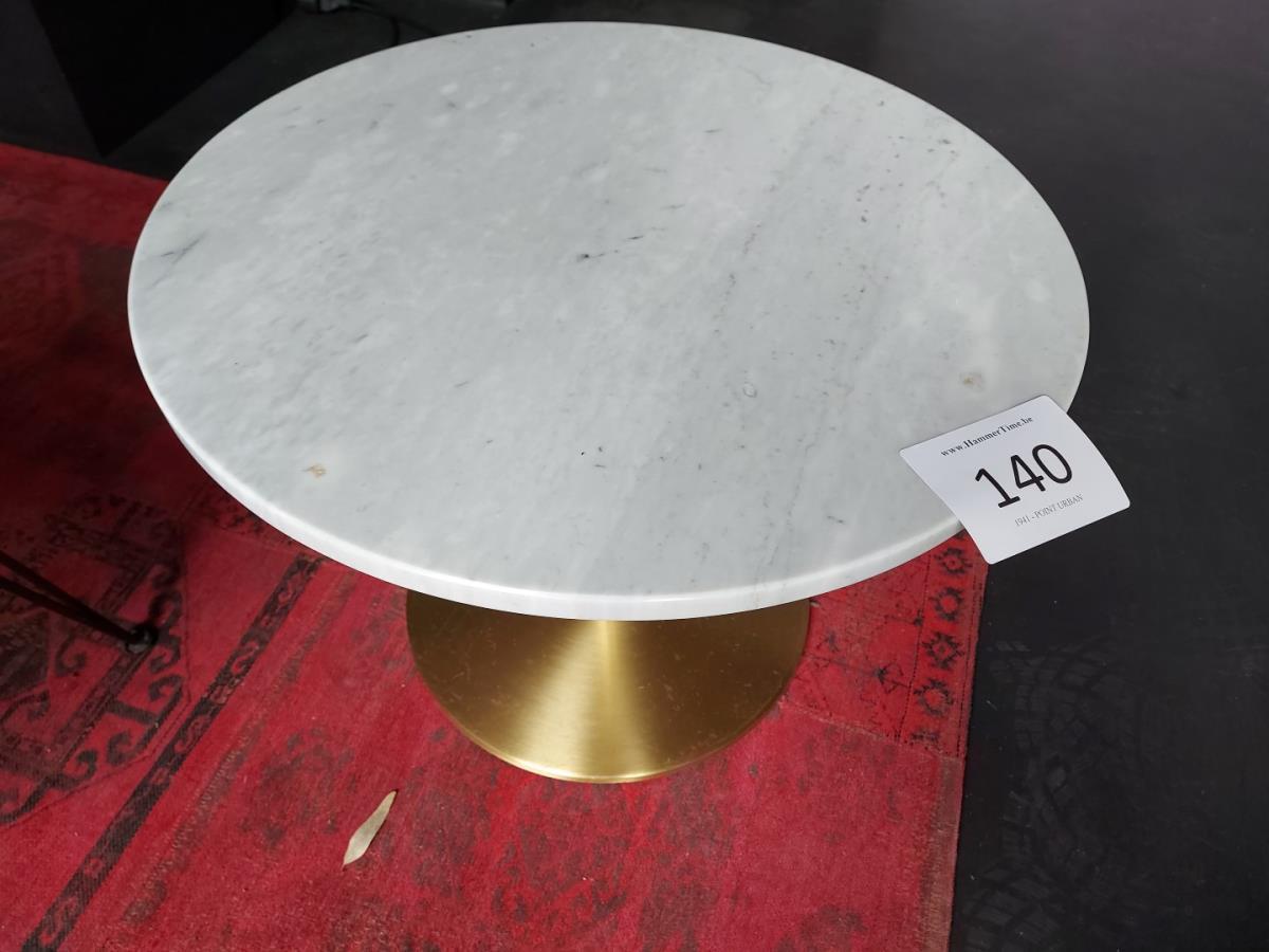 Numéro du lot 140: 1 Bijzettafeltje met marmeren blad en metalen poot