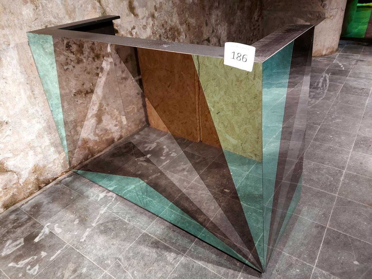 Numéro du lot 186: 1 Verrijdbaar MDF onthaalmeubel met spiegelplaten + 2 OSB togen