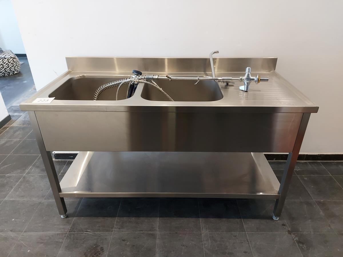 Numéro du lot 223: 1 RVS dubbele spoeltafel vv. handgreepkraan