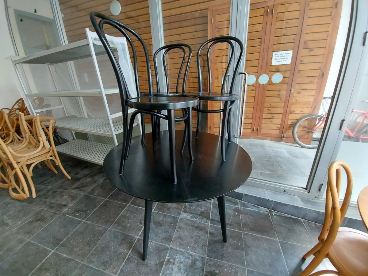 1 ronde tafel vv. 3 zwarte stoelen