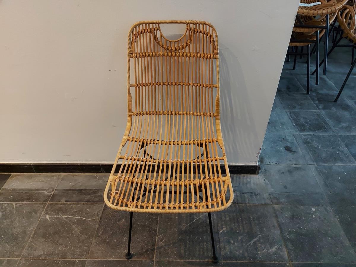 5 bamboe stoelen vv. metalen onderstel