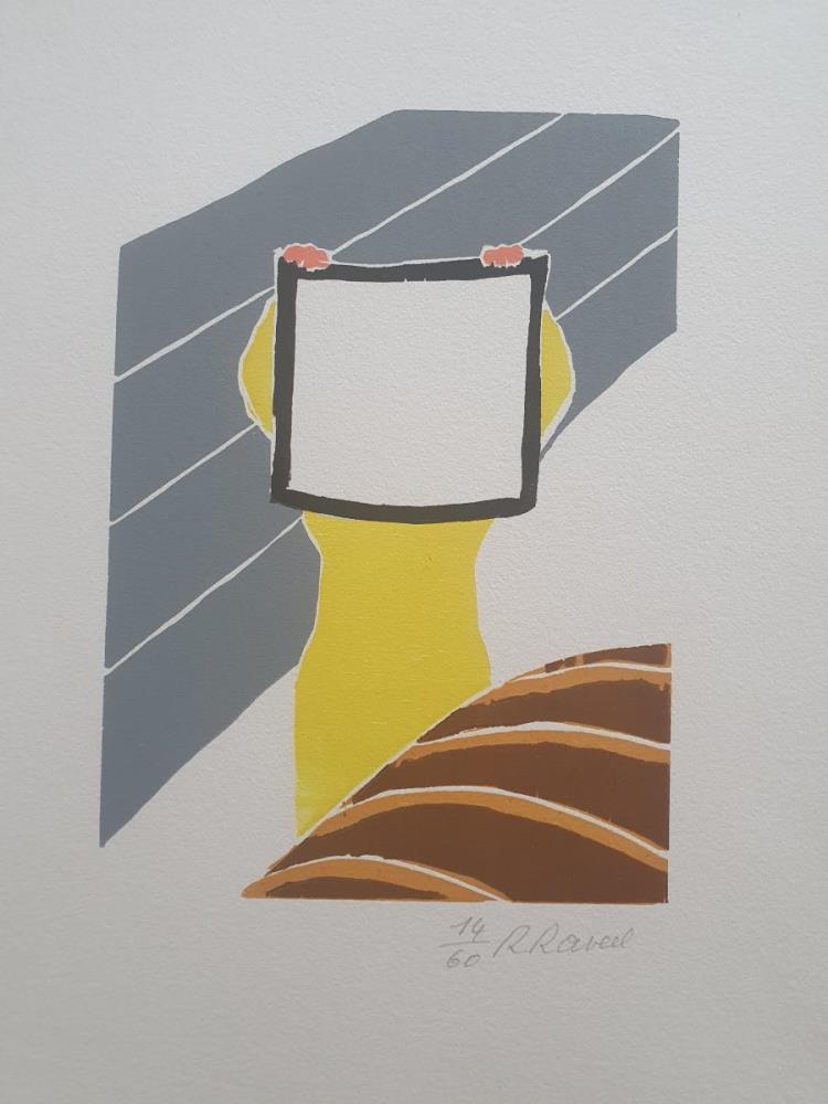 De kleurhoutsnede is met de hand getekend door Roger Raveel en genummerd