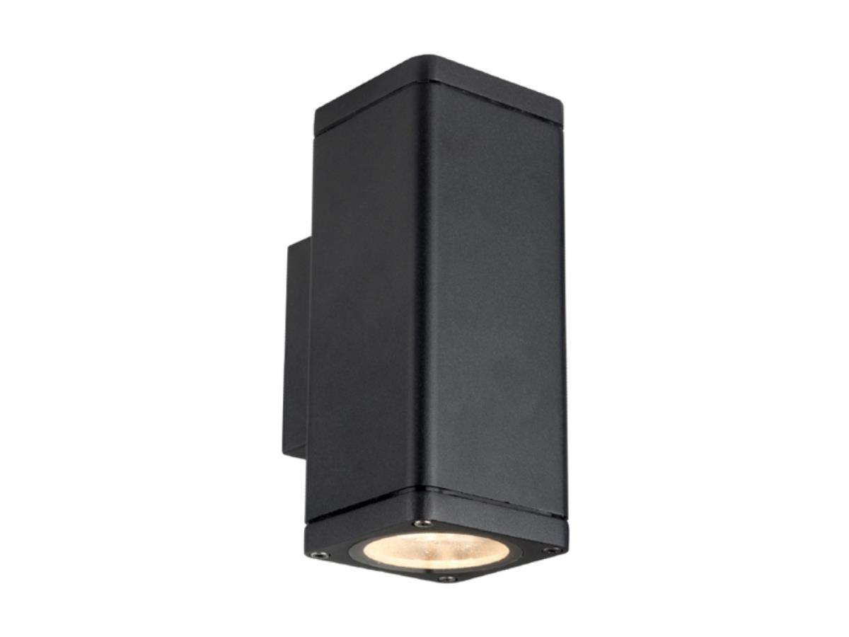20 x Wandlamp rechthoekig GU10 duo fitting zand zwart waterdicht - IP54 waterdicht - afm. 73 x 73 x 175 mm - materiaal aluminum en glas diffuser - bevestiging inclusief - GU10 fitting - bulb niet inbegrepen - geschikt voor binnen en buiten - 2 x bulb invoer - voltage 220-240V - max 2 x 35 watt - SKU 00701