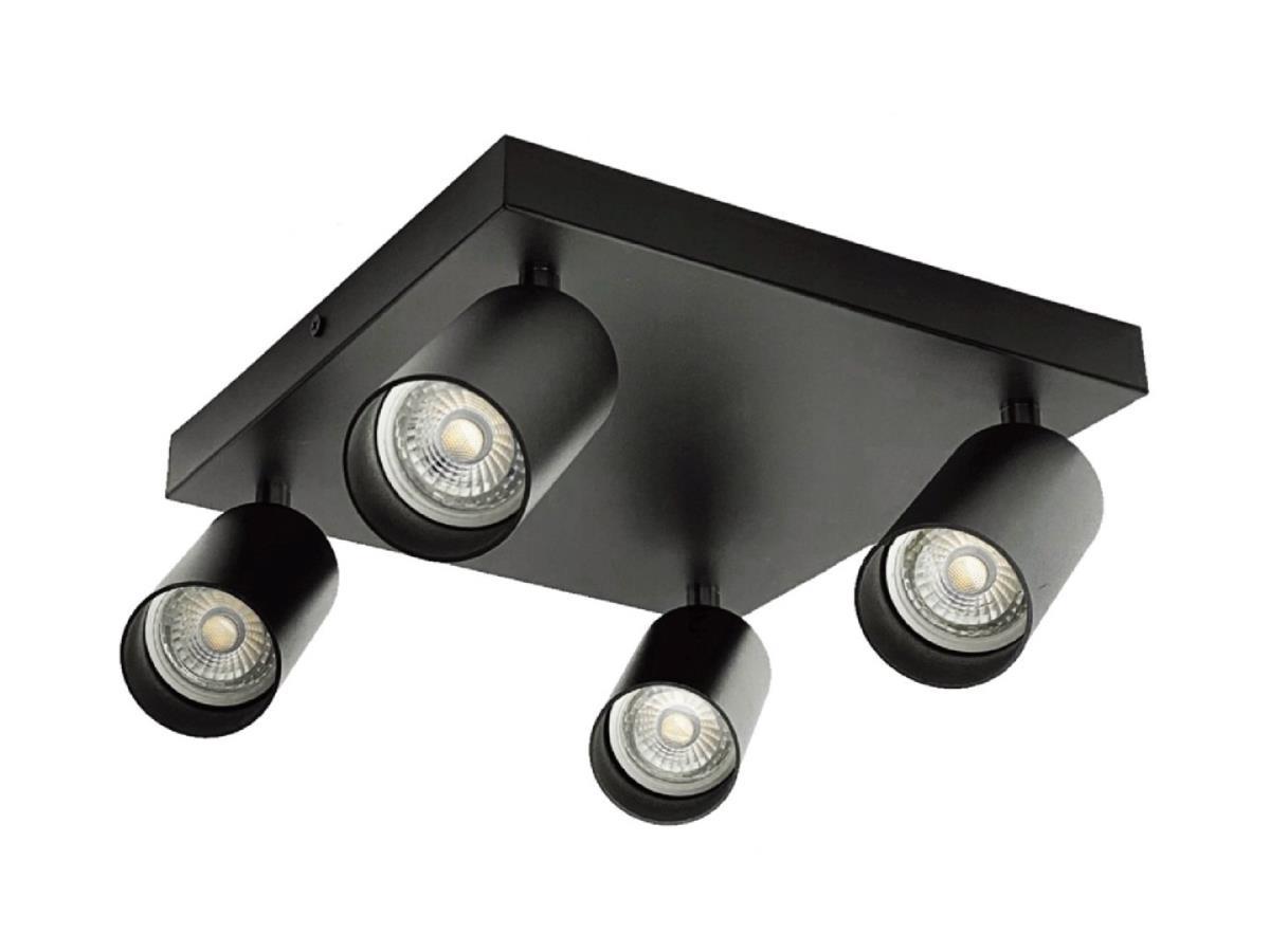 10 x GU10 Vierkant Opbouwspot Armatuur 4 cilinders zand zwart draaibaar - afdichting IP20 - product kleur zand zwart - afm Ø 55 x 100mm - afm wandhouder 260 x 260mm - draaibaar 350° en kantelbaar 90° - materiaal aluminum - bevestiging inclusief - fitting GU10 - bulb niet inbegrepen - geschikt voor binnen - 4 x bulb invoer - voltage 220-240V - max 35 watt - SKU 00530