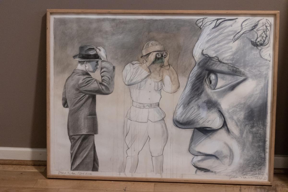Jan Vanriet (1948 - ) is schilder, tekenaar, illustrator, aquarellist, graficus, dichter. Hij debuteerde in 1972 met tekeningen en aquarellen in een figuratieve en illusionistiche stijl. De menselijke figuur staat veelal centraal in zijn oeuvre. Vanriet ziet de menselijke figuur als een wezen op een balans tussen eenzaamheid en gemeenschap. Zijn stijl is grafisch, op het sobere af; zijn kleurgebruik tot een minimum beperkt; lijnen zijn doorlopend en slechts een deel van het canvas wordt echt gebruikt, bepaalde delen blijven gewoon wit. Dit alles resulteert in een gevoel van eenzaamheid dat desalniettemin wordt doorkruist door een verbondenheid tussen alle wezens. Vanriet slaagt erin bruggen te bouwen tussen geschiedenis en individuele levens, tussen kunstvormen onderling en tussen geheugen en verbeelding.