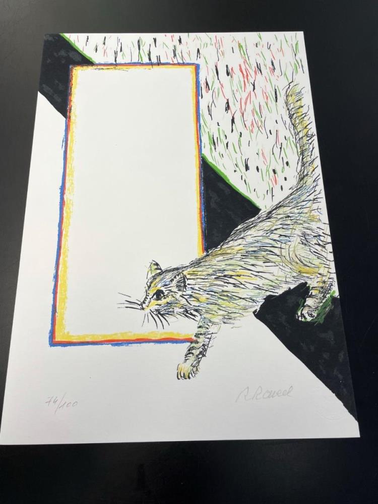 Zesde zeefdruk uit de suite Felix Vulgaris van Roger Raveel met als thema kat.