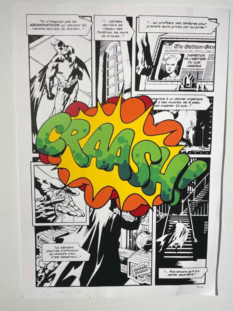 "CRAASH". Zeefdruk. Gesigneerd