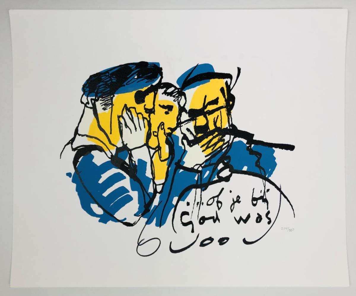 Herman Brood (1946 – 2001) tekent al veel van in zijn kindertijd, daar kan hij al zijn levendige fantasie in kwijt. Regelmatig als men hem zocht zat hij in een kamertje boven het magazijn van de machinefabriek van zijn vader te tekenen. Al op jonge leeftijd wordt zijn ouders verteld dat hij kleurenblind is en waarschijnlijk nooit een beeldend kunstenaar zal worden. Herman, zoals hij is, trekt zich daar niks van aan. Hij tekent in die tijd overal, in de trein, bus of het café. Op elk moment van de dag, als hij er even tijd voor heeft, tekent Herman. Op zijn zeventiende vertrekt hij naar de Academie voor Beeldende kunsten in Arnhem. En begint hij ook met schilderen. Brood raakt geïnspireerd door de Cobra schilders, met name Lucebert. Bij deze schilders staat een spontane, experimentele en uitbundige werkwijze voor op. Toch ontwikkeld Brood al snel zijn eigen stijl, die direct te herkennen is. Eind jaren tachtig wordt Herman steeds meer gewaardeerd als tekenaar en dichter, maar vooral als schilder. Typerend zijn het (door zijn kleurenblindheid, uit noodzaak geboren) gebruik van felle primaire kleuren zoals rood, blauw en geel, waarbij hij met zwarte verf letters aanbracht op zijn werk. De handtekening “brood” is vaak prominent aanwezig op zijn schilderijen. Tijdens het schilderen maakt Herman gebruik van diverse technieken. In hoog tempo gaat hij met spuitbussen, injectienaalden, viltstiften, verfrollers, maar ook gewone verf en penselen aan de slag. Zijn werk is snel en krachtig. Details zijn overbodig: met slechts enkele trefzekere lijnen zet hij ogen, neus en mond neer en creëert zo een raak personage.