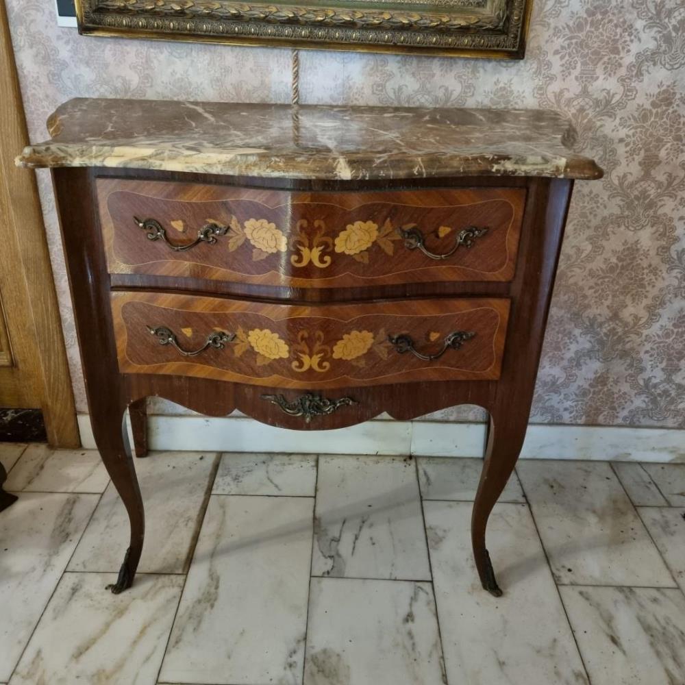 Numéro du lot 100: Bijzettafel in noterlaarfumé met natuurstenen blad