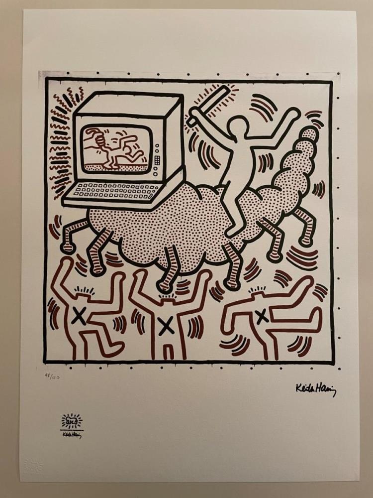 Keith Haring (After) |Lithografie | Getekend in de plaat |Afmeting : 50x70cm | Blinddrukstempel + inktstempel Keith Haring foundation | Limited édition : 150 stuks | Genummerd | Nieuwstaat | Zonder Certificaat