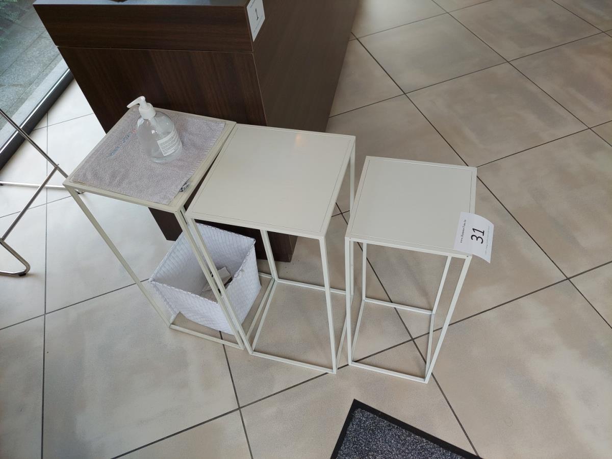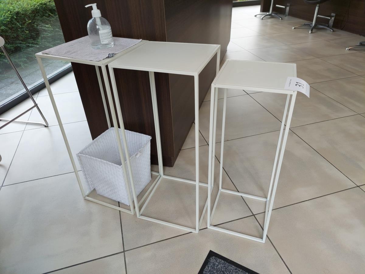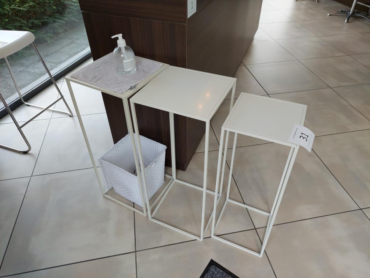 Numéro du lot 31: 3 witte metalen bijzettafeltjes