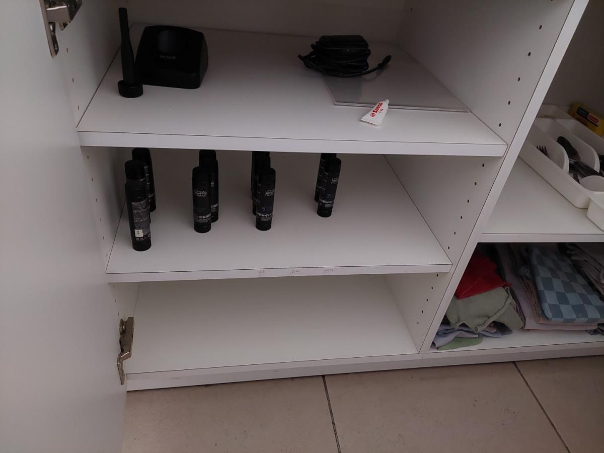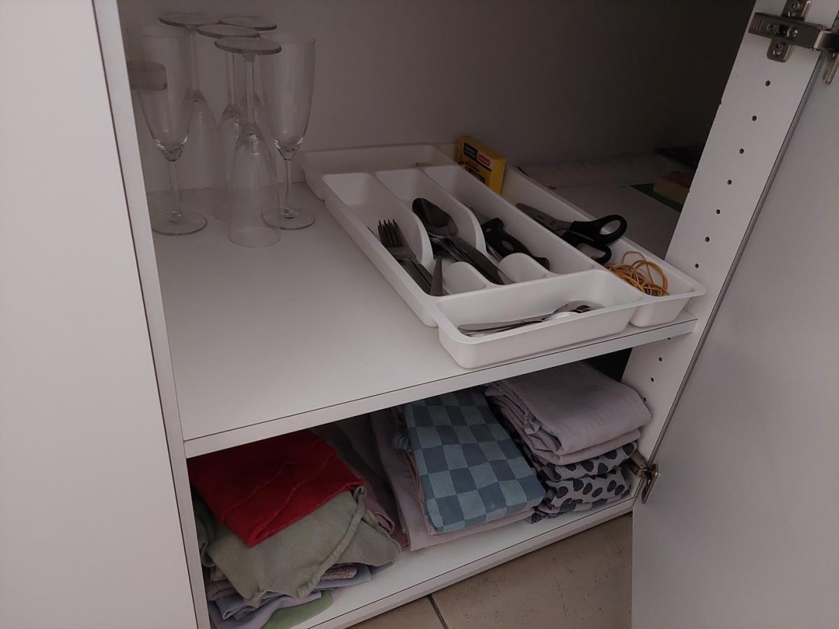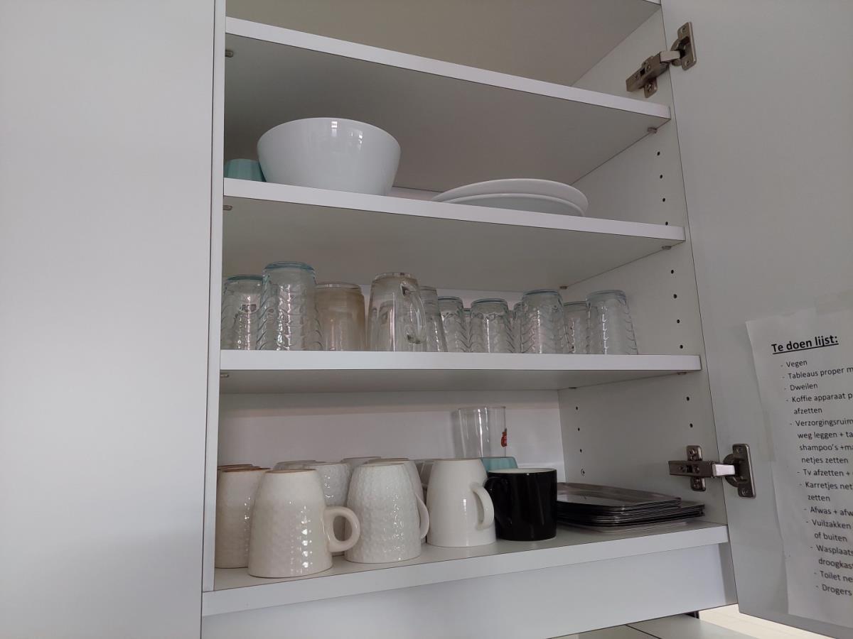 bu bestek, servies, glazen, div haarproducten, handdoeken, poetsproducten, waterkoker, vuilbak
