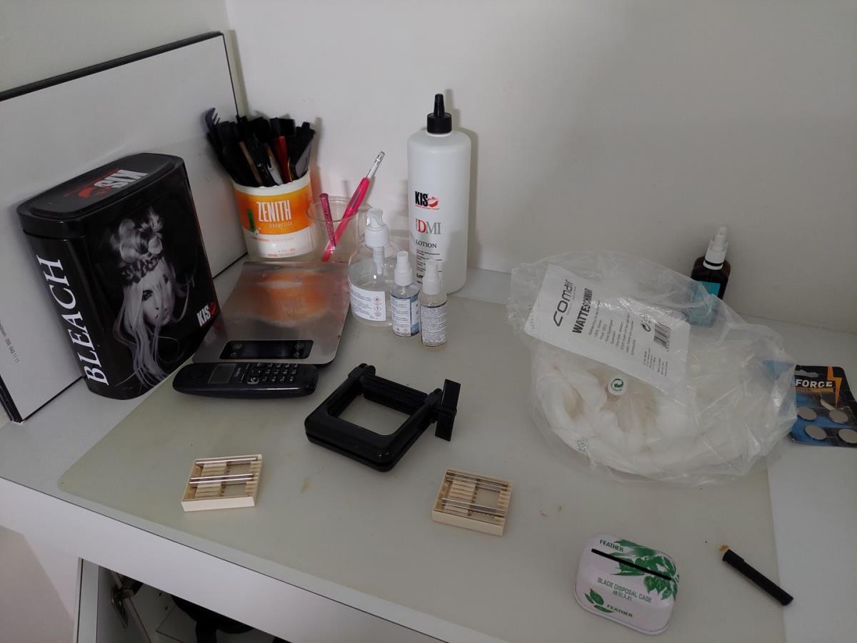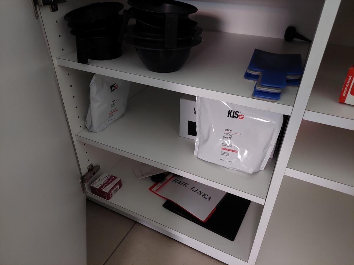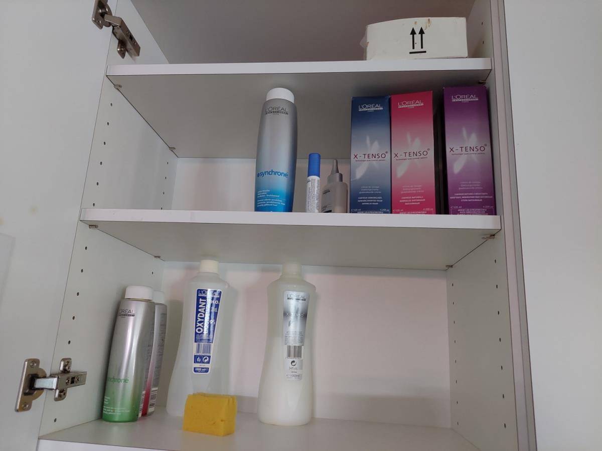 bu bestek, servies, glazen, div haarproducten, handdoeken, poetsproducten, waterkoker, vuilbak