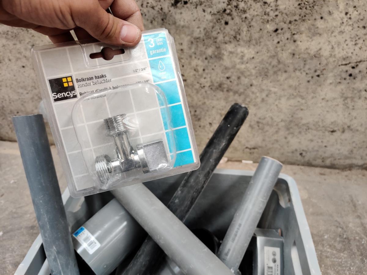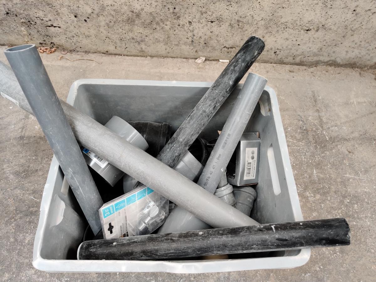 Numéro du lot 32: Pvc bak inh div pvc buisjes, koppelstukken en ellebogen