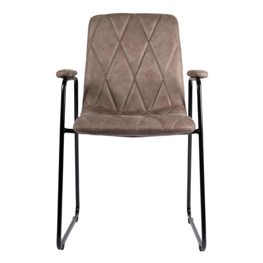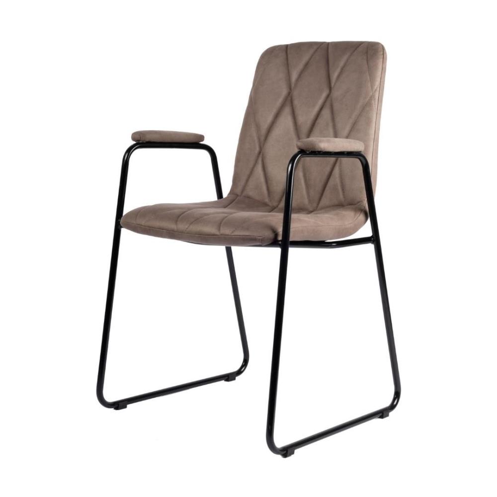 6x eetkamerstoel 8203, kleur: sand, cowboy stof, slee poot, bekleed armleuning, geruit gestikt;