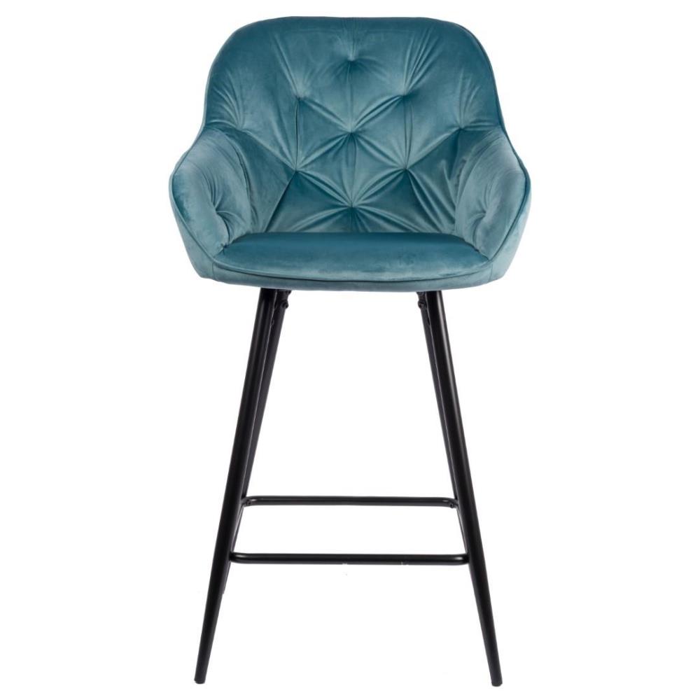 4x Design barkruk, Model: 9124-117, Kleur: blauw, geruit velvet stof, gecoat onderstel