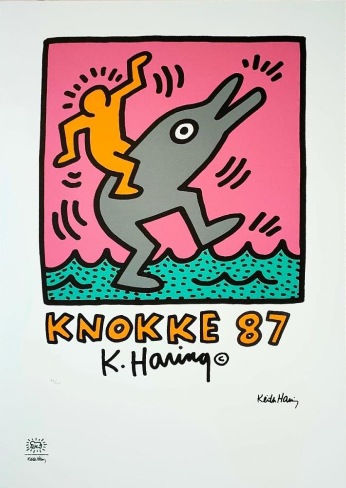 Keith Haring (After) Lithografie Getekend in de plaat Afmeting : 50x70cm Blinddrukstempel + inktstempel Keith Haring foundation Limited édition van 150 stuks.gallery prijs 1750€