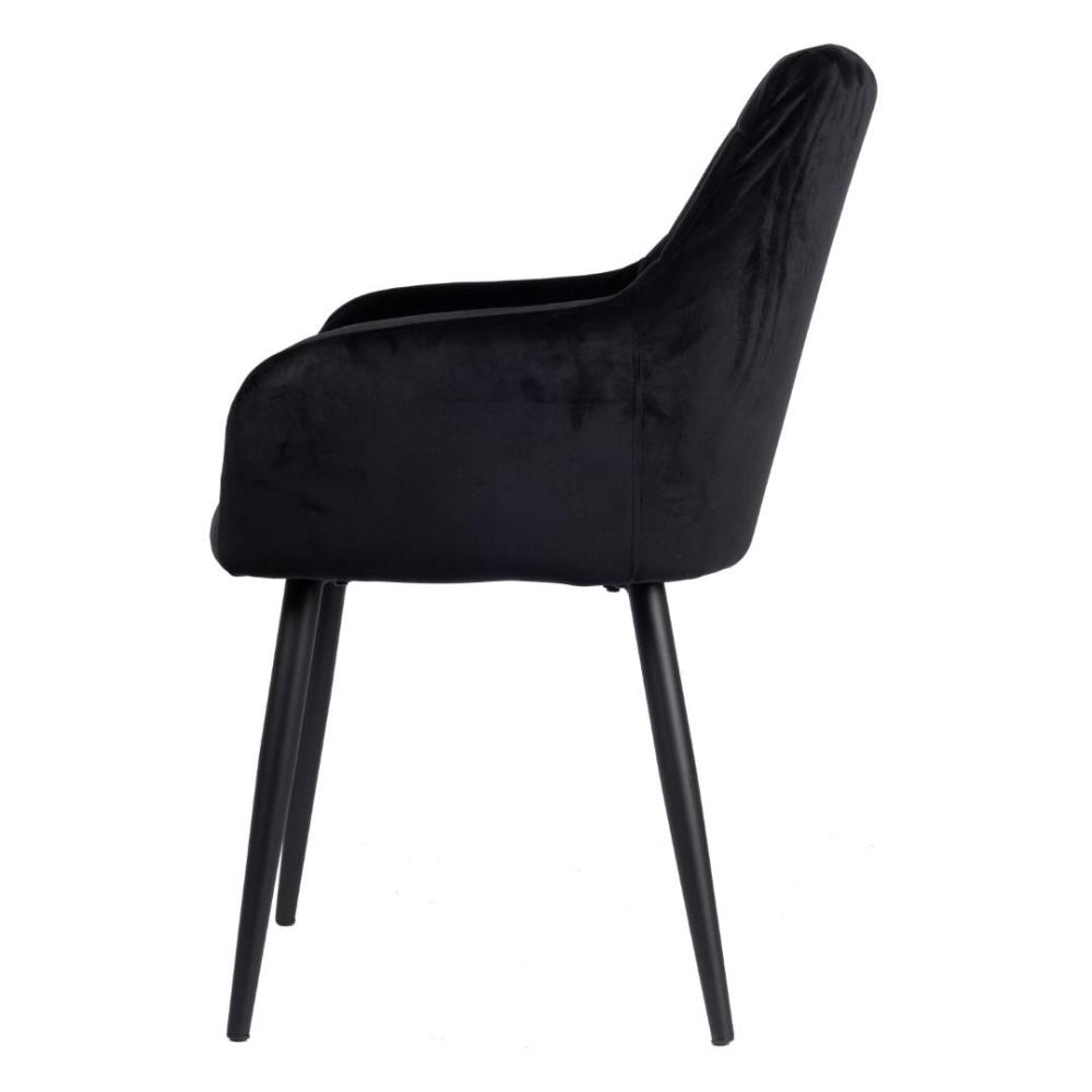 6x Design eetkamerstoel, model: Rio Black, Kleur: zwart, velvet stof, gecoat onderstel