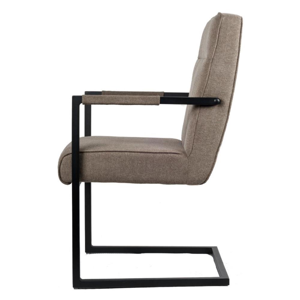 4x Modern eetkamerstoel met armleuning, kleur: Beige, weave stof, zwart gecoat en verzwaard onderstel