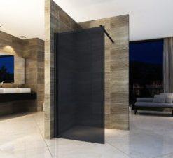 1 FUME GRIJS Douche glaswand compleet met stabilisatiestang en muurprofiel B 900 x H 1950 mm .GRIJS getemperd veiligheidsglas 8mm dik.Stabilisatiestang is uitschuifbaar van 80cm tot 100cm.Foto ter illustratie.